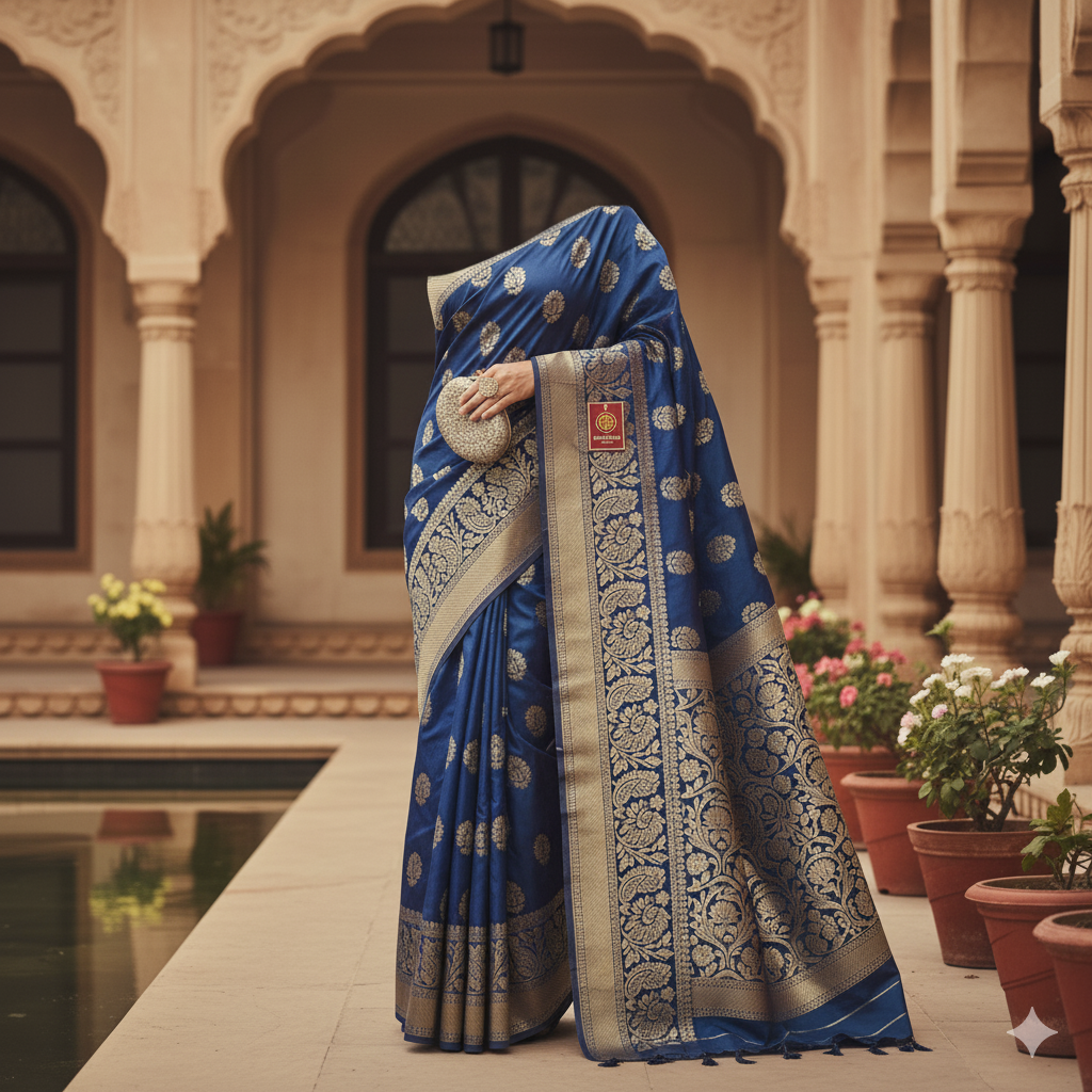 Embrace the epitome of South Indian elegance with our Regal Heritage Kanjeevaram...