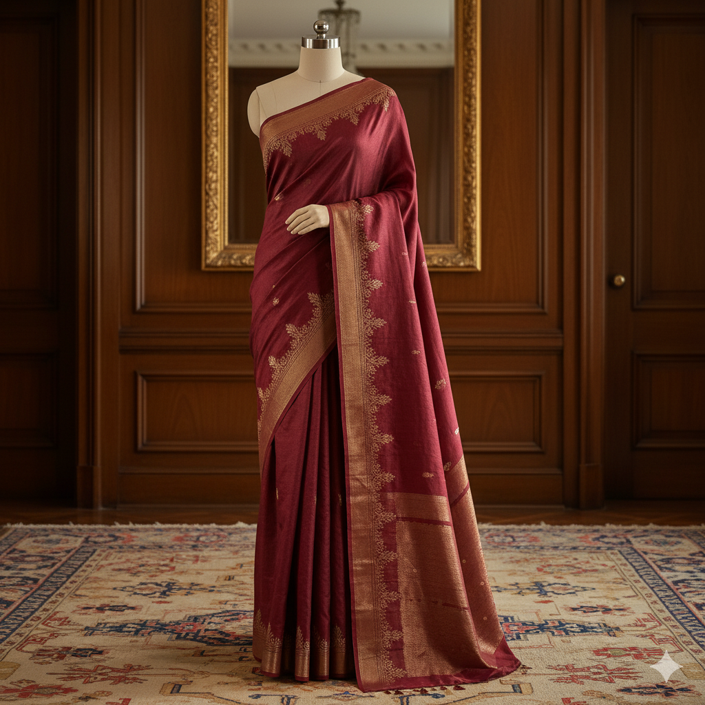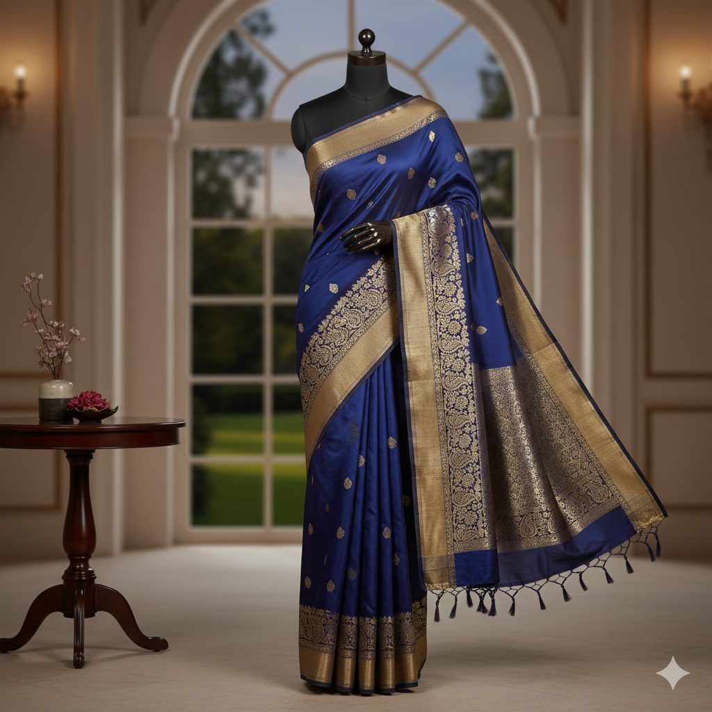 Tanchoi Benaras saree is crafted from a luxurious blend of silk and...