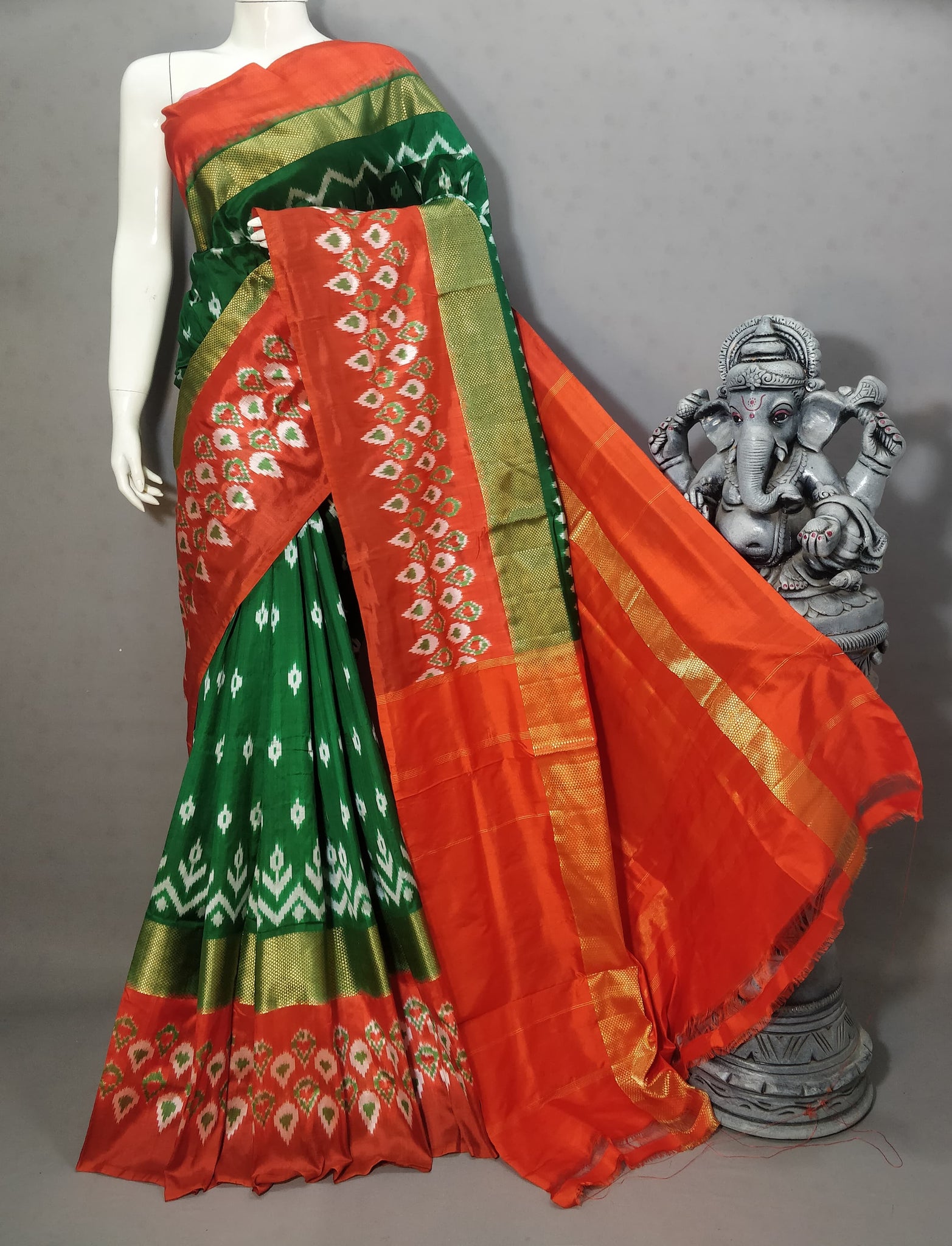 Experience the elegance of authentic craftsmanship with this Pochampalli pure silk double weave ikkat saree. Sourced directly from the weavers’ homes in Pochampalli, it carries the prestigious SILK Mark certificate, ensuring genuine silk quality. The intricate double weave technique lends a rich texture and enduring beauty, making it a timeless addition to your wardrobe. Perfect for special occasions, this saree beautifully reflects traditional artistry with modern grace.